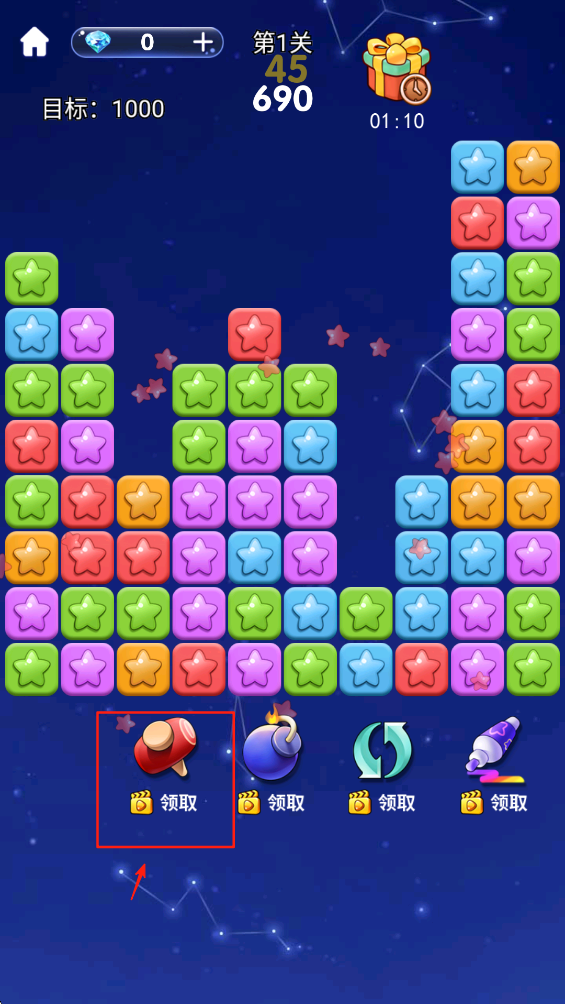 4、点击下方的图标领取额外工具,完成游戏任务。