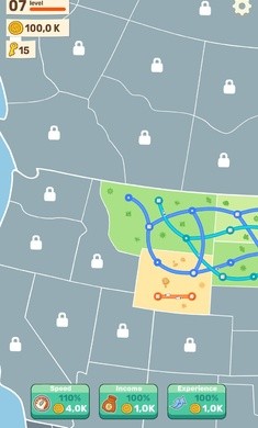 3、简单地连接地图上的两个点来移动,合并站点和扩展你的地图。
