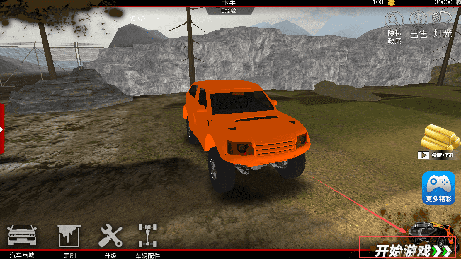 2、选定车辆后即可进入改装界面,利用初始金币升级引擎与轮胎等核心部件,为后续挑战奠定坚实基础。