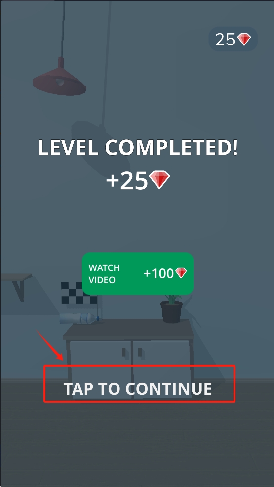 3、成功接住瓶子后,点击“TAP TO CONTINUE”继续游戏。