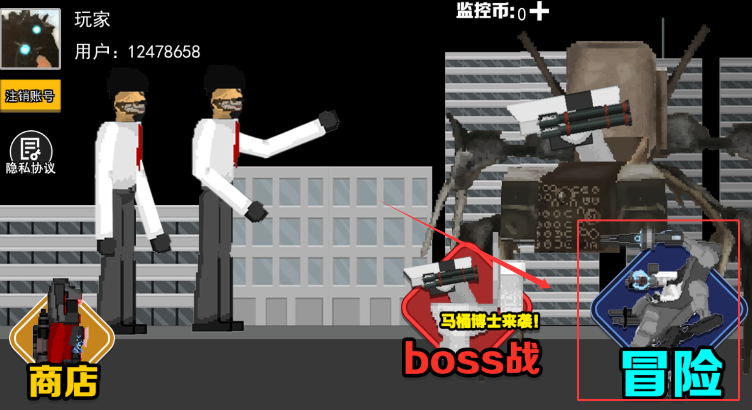 手机版巨型马桶人大战游戏是款高清像素风格枪战射击手游!玩家扮演监控人闯混乱城市,打各种怪物。在游戏中,玩家可以进行角色收集,不同角色的造型能力各异,技能有可成长终极技,非常有意思。玩家通过强化战力打多人竞技,解锁技能新模式。