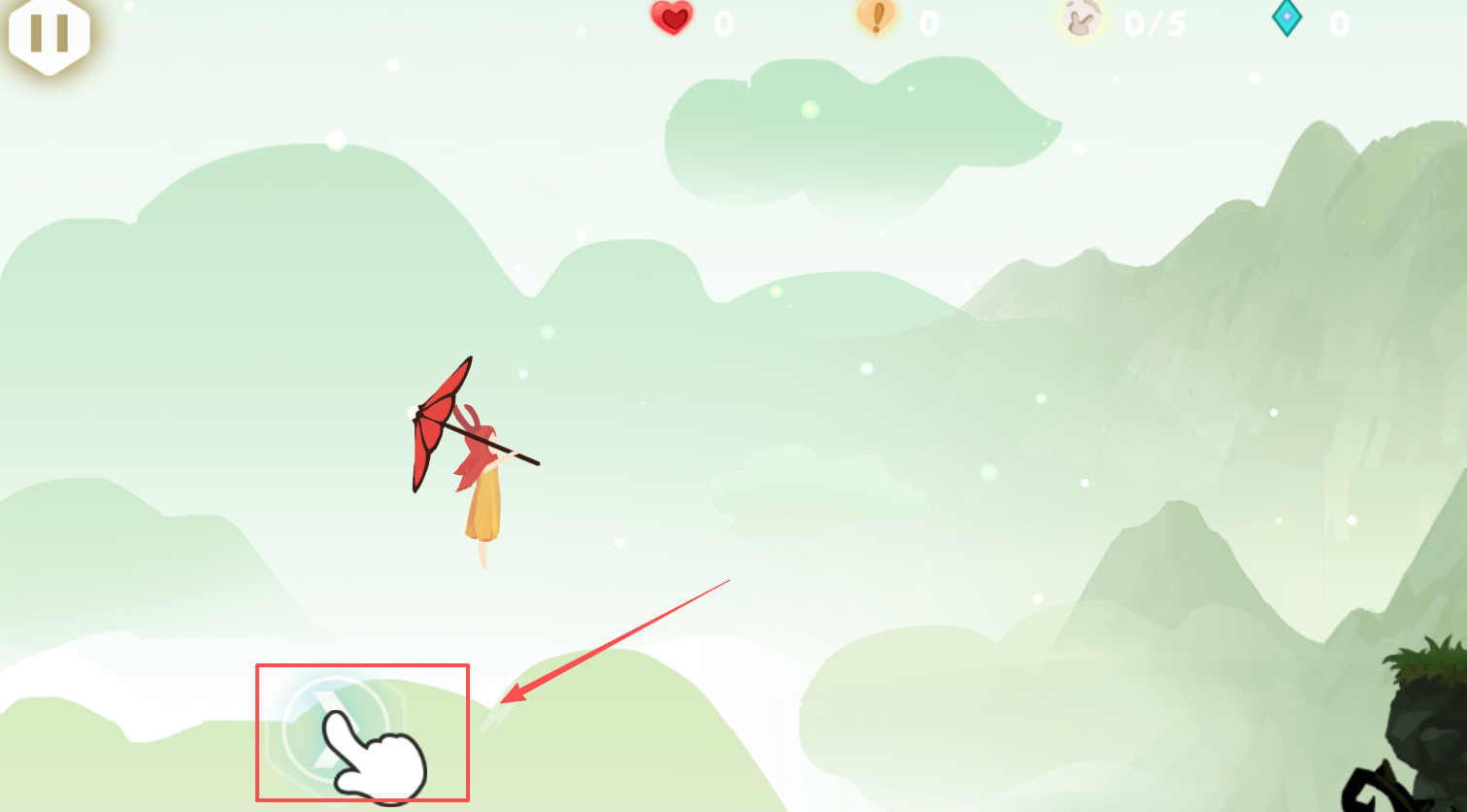 2、飞行跑酷环节要求玩家操控角色带着红伞在空中飞行穿梭,在限定时间内收集足够数量的水晶资源,这些水晶是开启后续章节的重要道具。