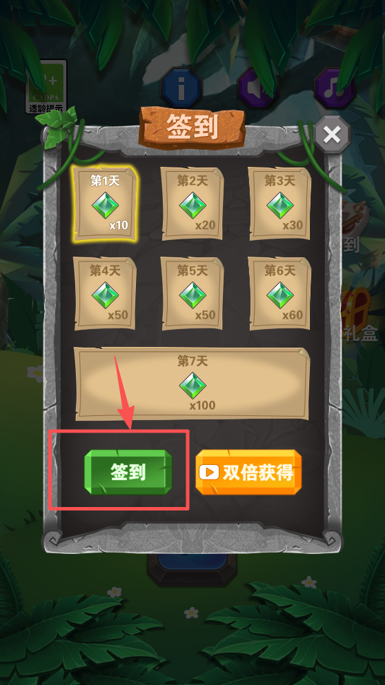 1、点击“签到”按钮,领取每日奖励。连续签到可获得更多钻石奖励。
