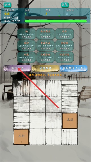 2、进入游戏主界面后,点击【锻造工坊】按钮,可进入工具购买界面,同时滑动移动【木材】道具进行合成操作。