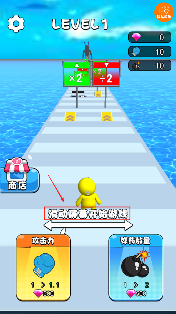 1、在游戏开始时,滑动屏幕来启动游戏。滑动后,角色会开始在桥上移动。