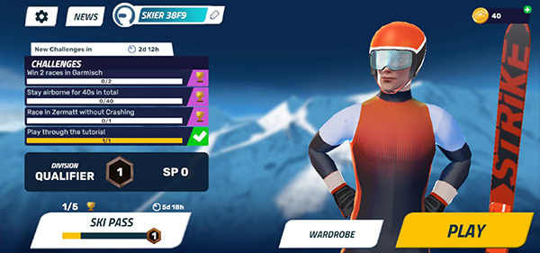 2、成为滑雪场上的大师,开始的挑战和比拼的对战动能玩法都能够让玩家来游戏;