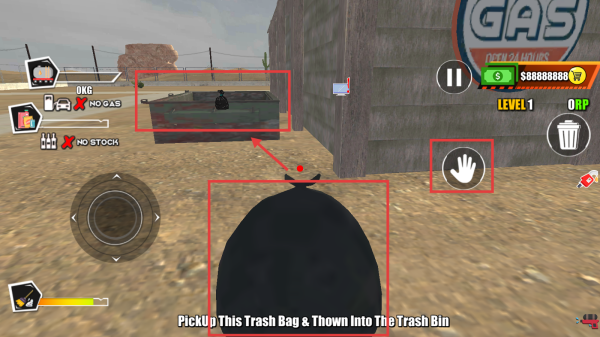 3、捡完垃圾后,将垃圾袋拾起并丢进垃圾回收箱,玩家需要按任务来经营自己的加油站,沉浸体验其中的乐趣吧。