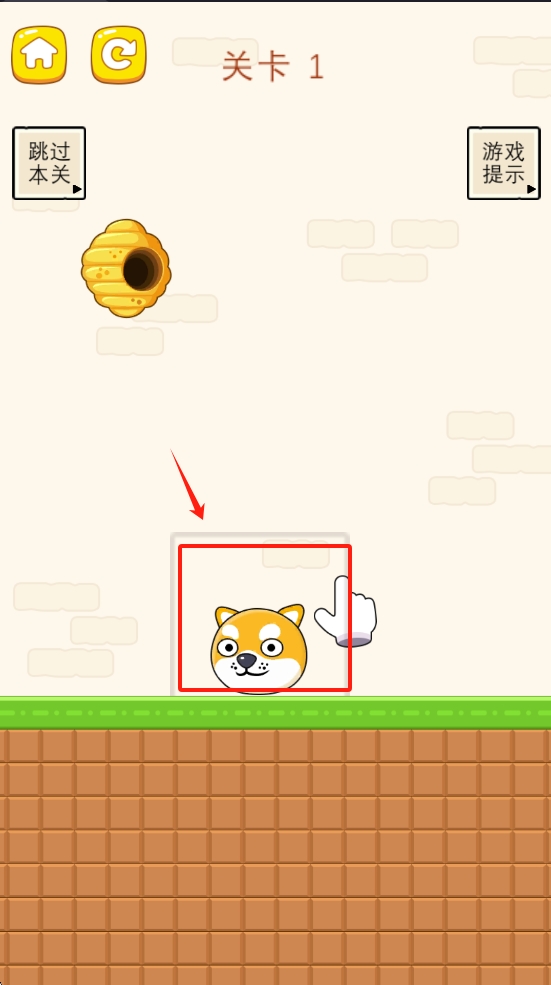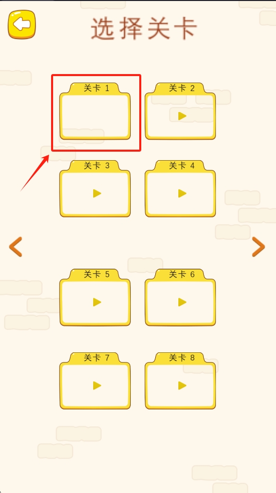 2、点击“关卡1”按钮,进入游戏的第一关,开始挑战。