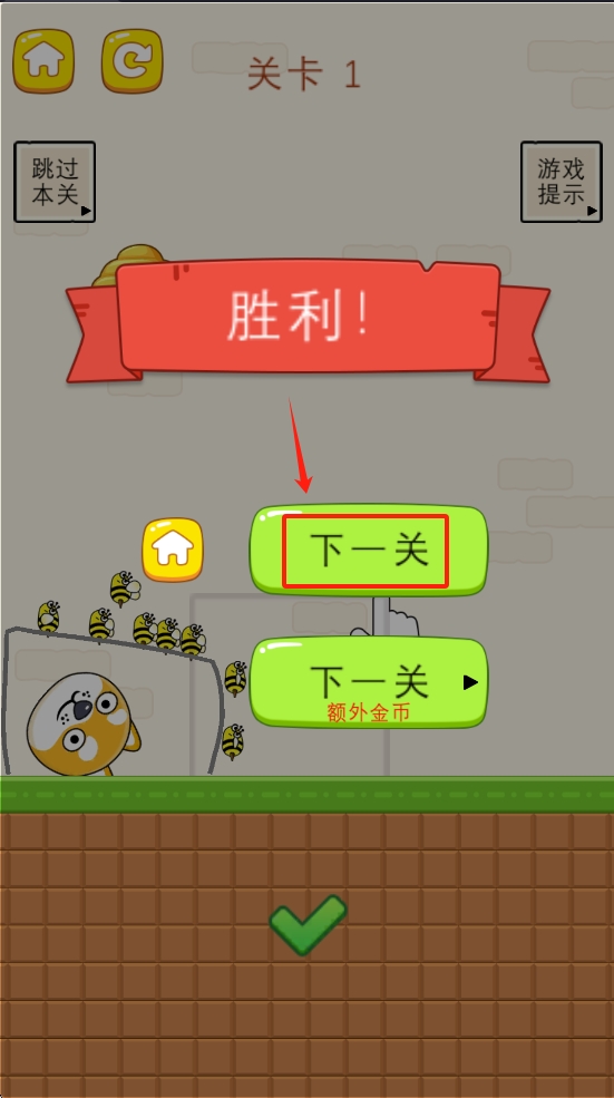 4、完成关卡后点击“下一关”,继续游戏并挑战更高难度。