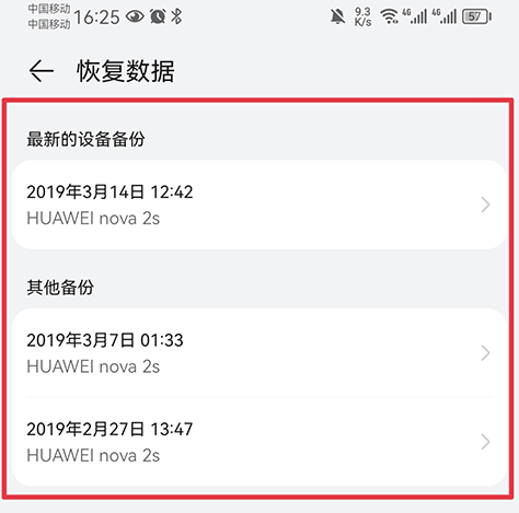 1.云备份:开启云备份后,华为设备在接入电源,锁定屏幕且连接无线网络时,将定期自动备份整机数据。当你拿到一部新设备时,还可以从云备份进行数据恢复。