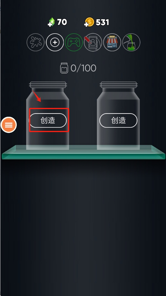 1、点击左下方 “创造” 按钮,开始瓶子创造游戏。