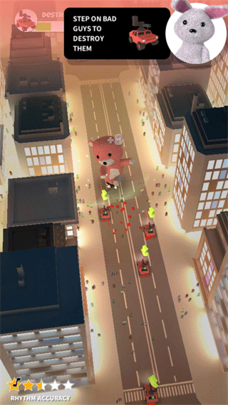 手机版巨型舞蹈公仔是一款节奏感十足的休闲闯关手游。玩家操控巨型毛绒公仔在城市街头随音乐舞动,通过踩爆拦截车辆、躲避警方坦克炮弹完成挑战。游戏融合音游与动作元素,支持角色自定义装扮,玩家可自由调整公仔外观、颜色及花纹,搭配海量服饰打造百变造型。其核心玩法包含节奏律动、破坏机制与生存挑战,玩家需精准把控音乐节奏,在躲避攻击的同时摧毁障碍,生存更久以获取高分。清新唯美的手绘画风与轻快BGM带来治愈体验,适合休闲解压。