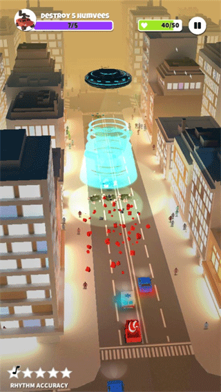 这些车子都是拦住自己跳舞的障碍物罢了,玩家需要左右移动将开过来拦截自己的警车全部踩爆。
