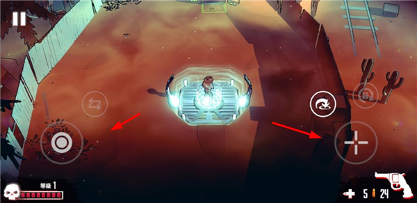 6、待确认任务地图,进入后即可看到游戏操作方式,左边轮盘控制角色的移动,右边分别为射击、翻滚和换弹