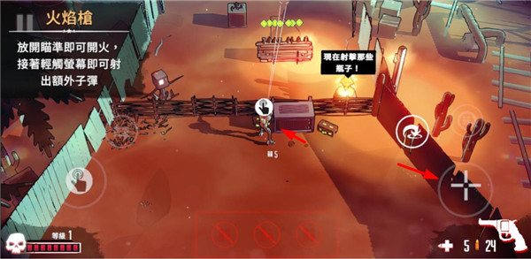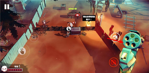 7、了解基本按键使用后,长按射击按钮瞄准并射击这些瓶子