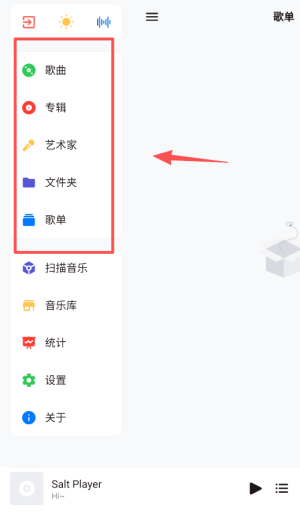 1,在主界面右上角菜单中可以切换显示视图,例如网格显示专辑封面或简洁的列表布局。