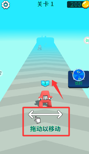1、在游戏开始界面,通过拖动红色小车来控制其在道路上移动,避开障碍物并收集金币。