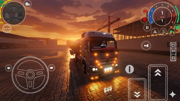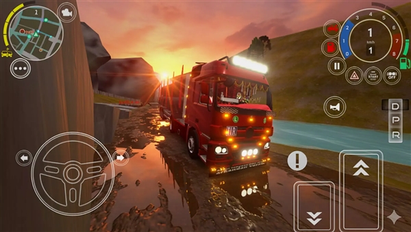 2. 驾驶过程中需通过虚拟方向盘、油门和刹车按钮来控制卡车,并注意观察后视镜与路况提示。