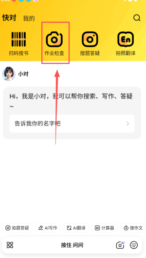 1、首先,下载并安装快对作业App,注册完成后进入主界面,快速了解各项功能,便于后续搜索和使用。