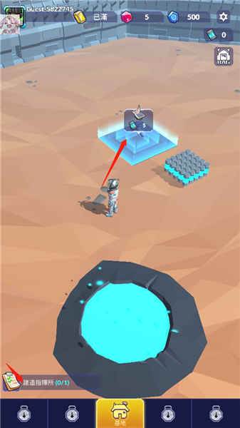 1、进入游戏首页,我们先移动角色手机蓝色能源,收集完后,移动岛建造的地方,花费能源建造指挥室;