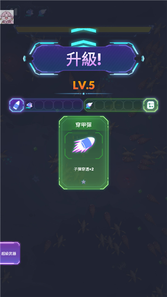 9、当宝石拾取足够的话,玩家可以升级机甲的等级,等级越高,伤害越强,当然,虫族也越来越多,最后直到被虫子淹没;
