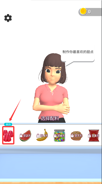 1、进入游戏后首先在标题界面选择想要制作的甜品类型,无论是球冰淇淋、甜筒还是冰棍都可自由挑选,选定品类后进入准备阶段,需要撕开原料包装袋并挑选已解。