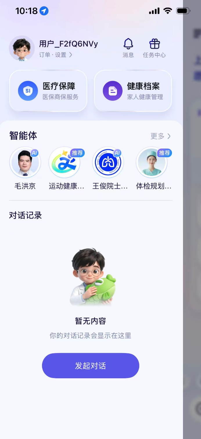 4、手指向右滑动屏幕,用户可以自己选择符合现有身体状况的智能体,进行1对1资讯。