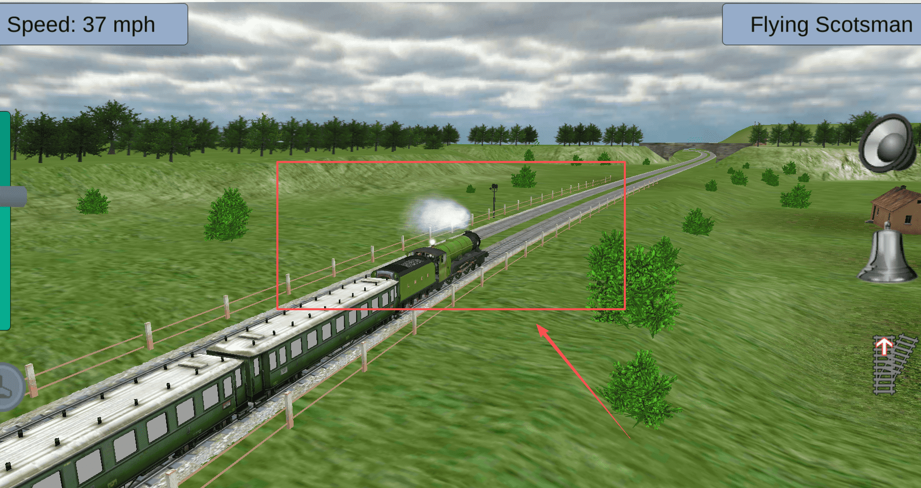 2、火车开动后,记得留意屏幕上的速度显示哦,就像材料里“飞行苏格兰人”号能达到100英里那么快。