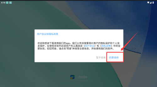 1、在协议界面,点击同意使用按钮。