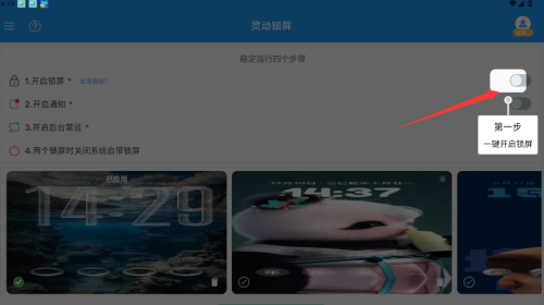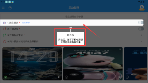 3、在设置界面,一键开启锁屏功能。