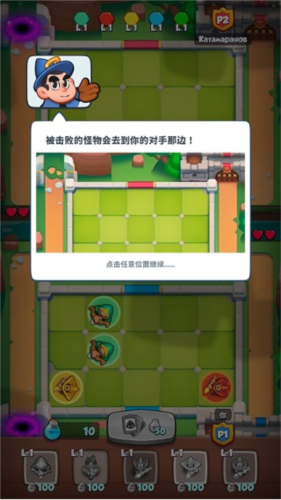 在皇家冲冲冲点击图中所示,先来召唤一个单位