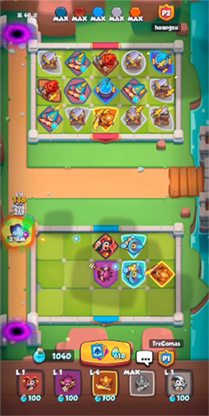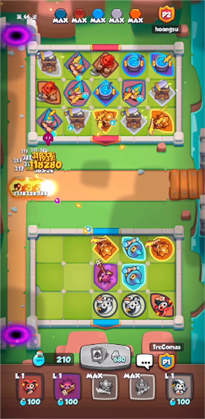 皇家冲冲冲最新版(Rush Royale)是一款融合策略塔防与卡牌收集的趣味手游,以卡通画风勾勒出热血战场。你将化身三国主公,经营专属主城,通过召唤、合成单位构建防线,每一步操作都充满变数,随机掷出的骰子可能改写战局,而升级英雄不仅能强化属性,更能解锁炫酷新技能,连外观都会随成长蜕变。快来组建你的梦幻阵容,开启这场充满惊喜的攻防之旅吧!