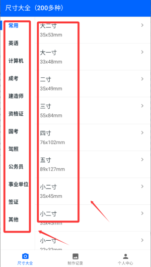 1、核心制作与尺寸定制,用户通过证件照制作功能导入或拍摄照片,并依据使用场景在尺寸选择中精准选取所需的官方规格。