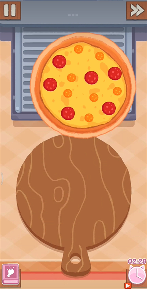 5、使用工具切开披萨,烹饪时间有限在右下角请注意;