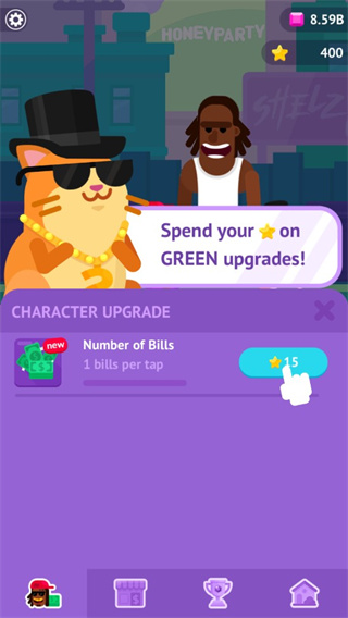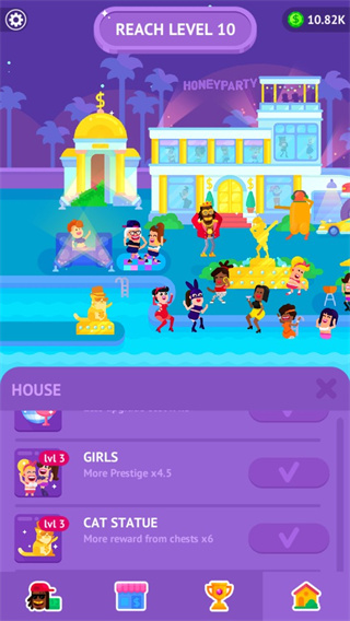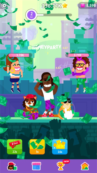 手机版派对大师(Partymasters)是一款让你化身派对焦点明星的点击休闲手游,轻点屏幕开启狂欢,在动感音乐中与舞者PK较量。操作简单却越玩越上头,后期对手更强需持续点击,升级角色强化战力,还能将住所打造成派对中独一无二的亮眼地标。完成装扮小游戏解锁宝箱,抽取神秘宠物为音乐现场助兴;为吉他刷上心仪色彩、装配个性配饰,让它成为舞台上的流动风景。海量妆容服饰美甲随心搭,挑战不同造型成为瞩目焦点。精致画面与光影特效烘托热烈氛围,从尬舞对决到豪宅建造,每一步都藏着惊喜。快来派对大师,用点击奏响你的狂欢乐章吧!