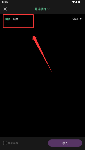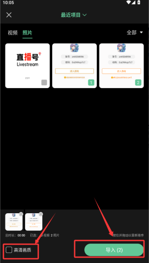 3、点击需要编辑的图片选择左下角的高清画质再按右边的导入即可。