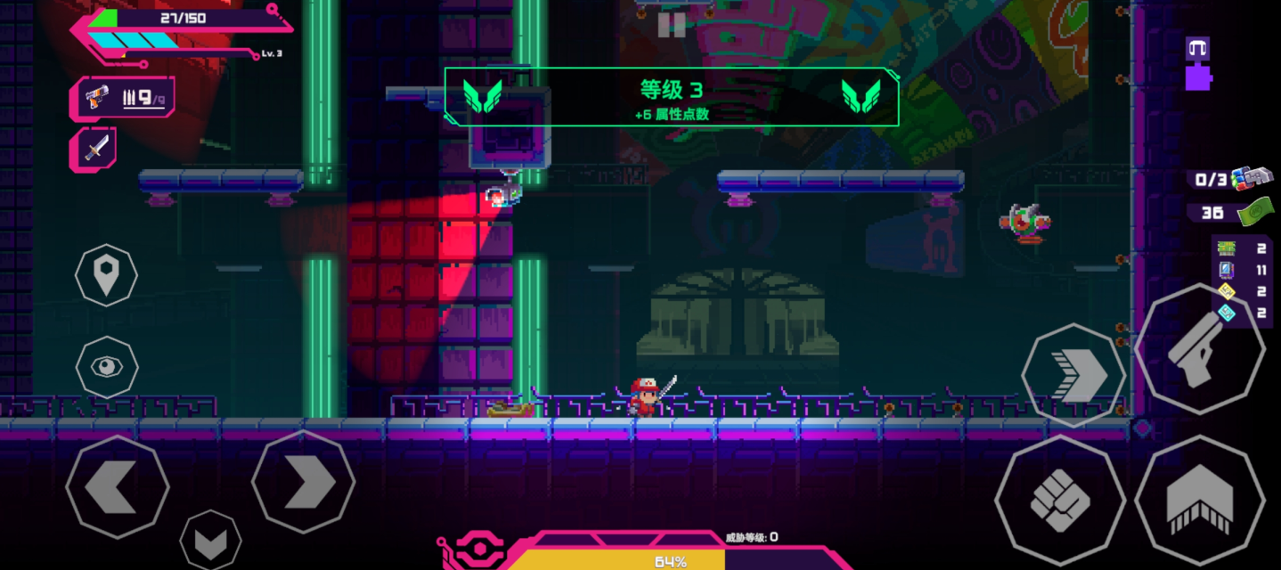 1、流畅动作 + 肉鸽重玩性,游戏具备快速、流畅的战斗系统,你可以闪避、滑墙、跳跃、冲刺,与各种机械敌人搏斗。每一轮都有可能遇到不同房间、敌人、 Boss,经验、道具的变化性很高。