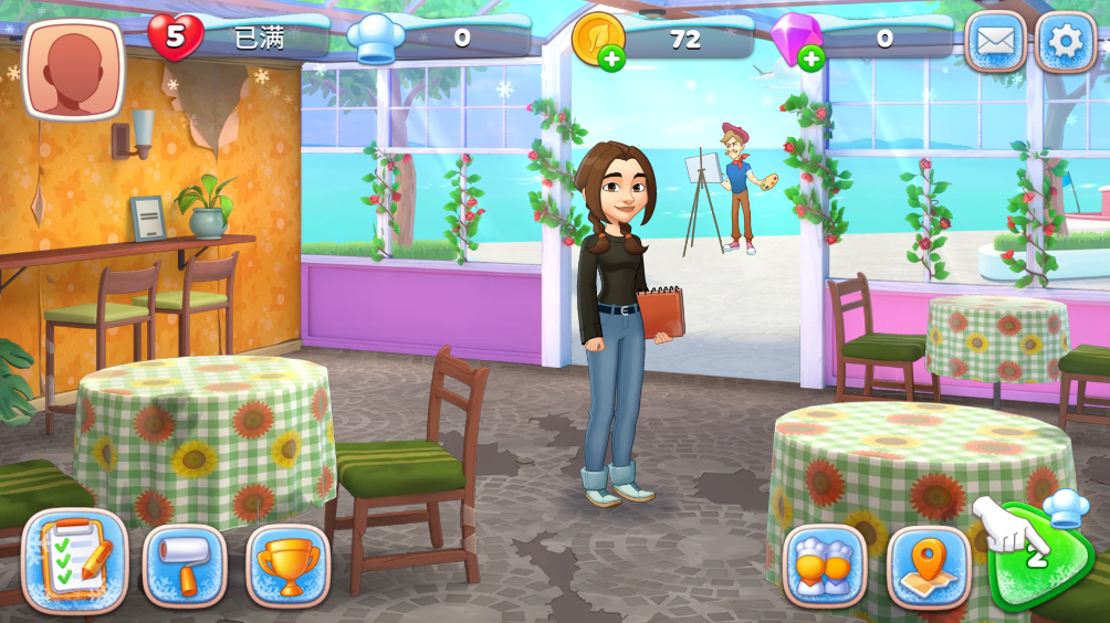 玩家进入游戏将经营一家破败的餐厅,玩家需要凭借自己的策略将餐厅发展壮大