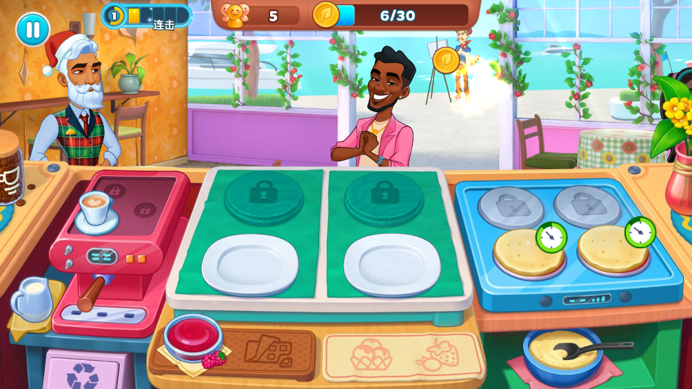 玩家需要进入游戏关卡为顾客制作他们心仪的食物,每个关卡都有通关目标