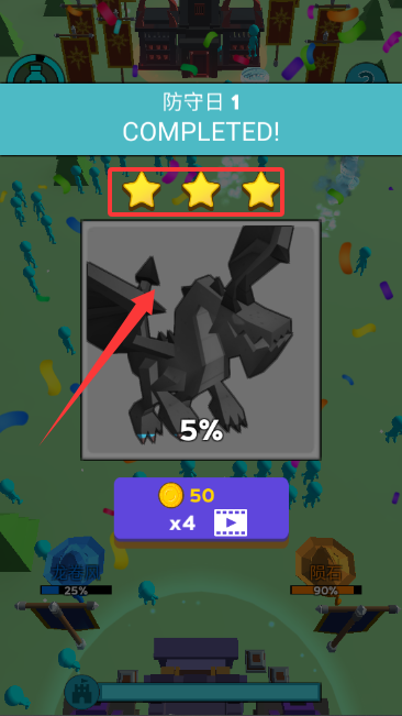 2、初期需要合理分配战斗获得的金币资源,优先提升基础士兵的等级与攻击力,同时适量升级魔法药水的效果,以此应对前几关逐渐增强的敌方攻势。