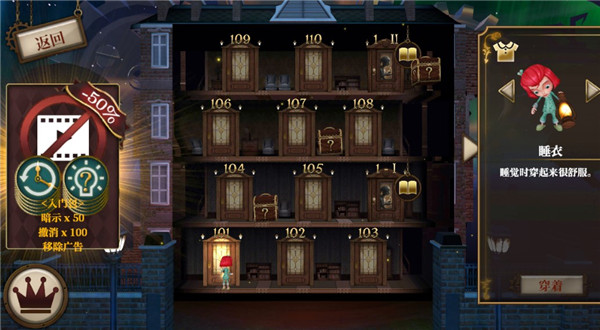 6、游戏分成了4类主题,有144关。每个宅子都地窖,Anne在地窖可以使用特殊物品来找到出口,比如用电话传送自己,放炸弹和同时移动多个房间。