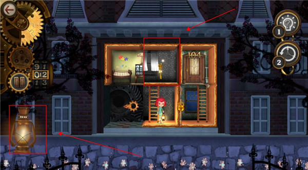 5、有些方块房子的背景是灰色的,这表示房子的位置错位,我们需要将其摆正才能通过,长按提灯可以查看房子是否摆正了
