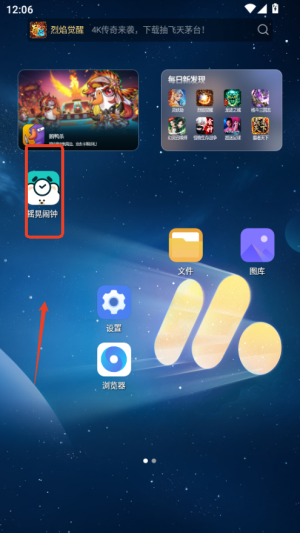 1、首先在应用商店搜索摇晃闹钟或抖动闹钟并下载安装,打开后浏览其简约的界面与主题背景。