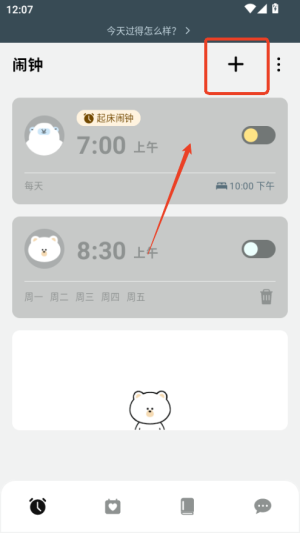 2、进入闹钟设置,点击添加闹钟,设定好时间与重复周期,并从多种铃声中挑选喜欢的提示音。
