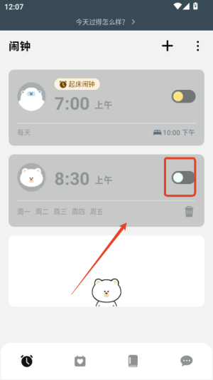 3、你可以在主题库中选择可爱的卡通形象作为闹钟背景,使提醒界面更符合个人喜好。