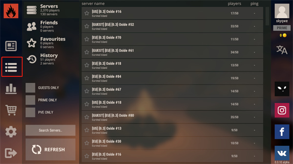 1、打开腐蚀Rust手游,游戏需加速器启动,选择一个房间。
