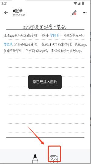 3、编辑时,你可以点击工具栏插入手机里的图片,或者为当前笔记添加分类标签以便查找。