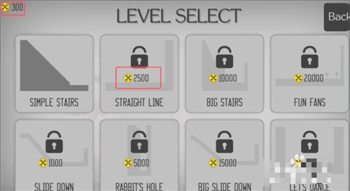 5、关卡页面如图,除了第一关,其他的关都需要有足够的金币才能解锁,我们可以重复玩第一关,获取到足够的金币,才能解锁第二关。
