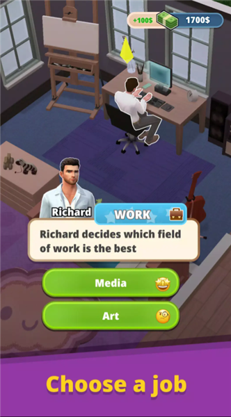 3、开局角色基础建设,完成住宅核心区域布置与职业选择,熟悉时间管理、资源分配的核心机制。