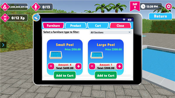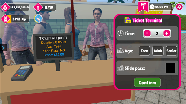 7、随着你的水上乐园越来越受欢迎,是时候进行扩张了。解锁新区域以扩大水上乐园的规模,并雇佣员工来处理日常的混乱情况。有了团队的支持,你就可以专注于真正重要的事情:打造出最好的水上乐园。